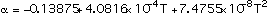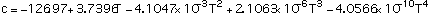 with T the temperature in C and values of coefficients as follows: