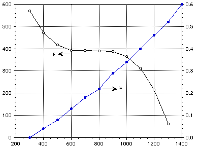 Figure 2 : Elastic modulus and thermal expansion coefficient of silicon carbide.