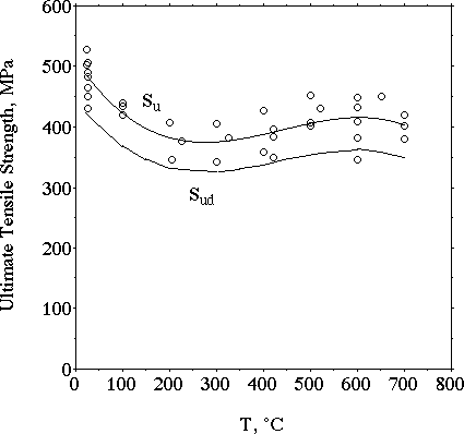Ultimate tensile strength (UTS) data and best-fit correlation (Su) for unirradiated vanadium alloys with 4-5 wt.% Cr, 3-5 wt.% Ti and 0.05 +/- 0.04 wt.% Si. The best fit correlation is recommended to represent the average UTS for V-4Cr-4Ti. The correlation Sud is recommended for design analysis and for determining the limiting stress intensity (Sm) for average primary membrane stresses.