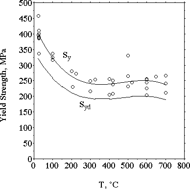 Yield strength (YS) data and best-fit correlation (Sy) for unirradiated vanadium alloys with 4-5 wt.% Cr, 3-5 wt.% Ti and 0.05 +/- 0.04 wt.% Si. The best fit correlation is recommended to represent the average YS for V-4Cr-4Ti. The correlation Syd is recommended for design analysis and for determining the limiting stress intensity (Sm) for average primary membrane stresses.